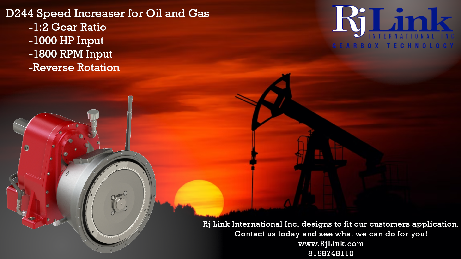 Rj Link International Inc designs for Oil and Gas with a rugged D244 gearbox.